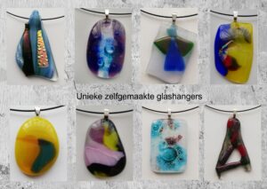 Mijn interesse om met glas te werken was altijd al aanwezig. Zo ben ik samen met Theo gaan experimenteren met glasfusing. Nu maak ik zelf thuis glassieraden.